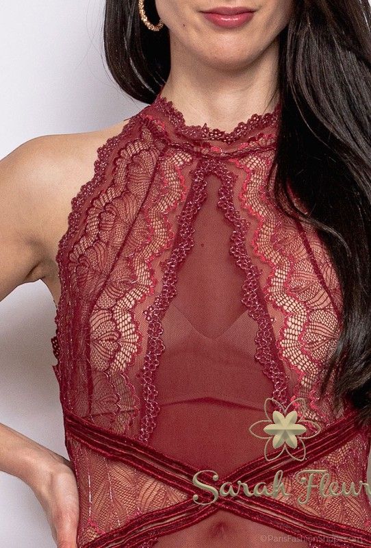 Body de encaje elástico de tejido de alta calidad en color burdeos.