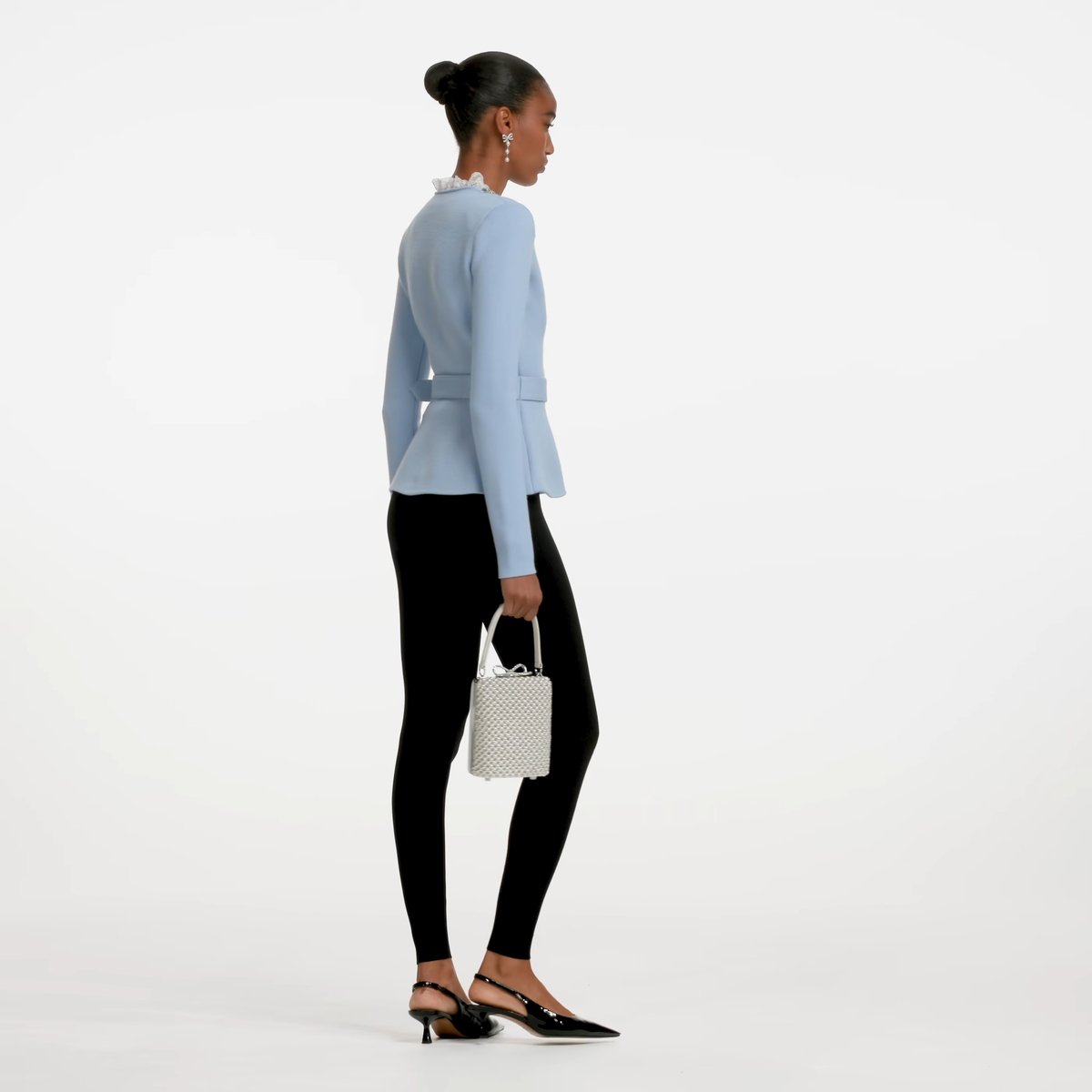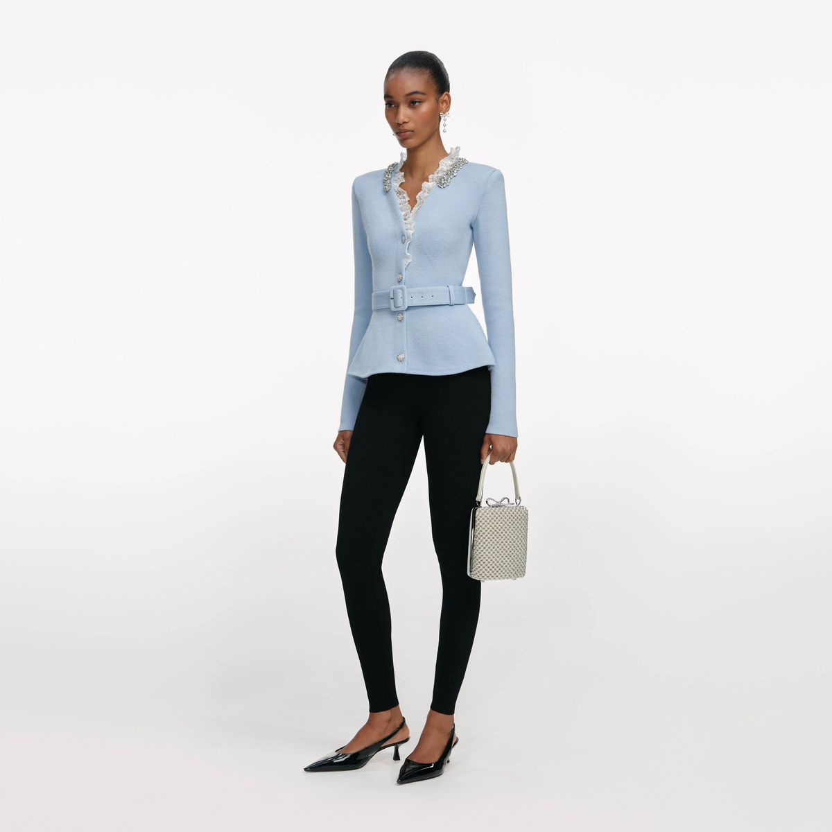 Botones de pedrería frontales con cinturón para marcar cintura.