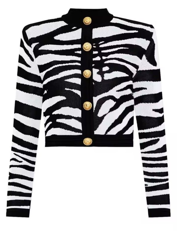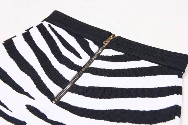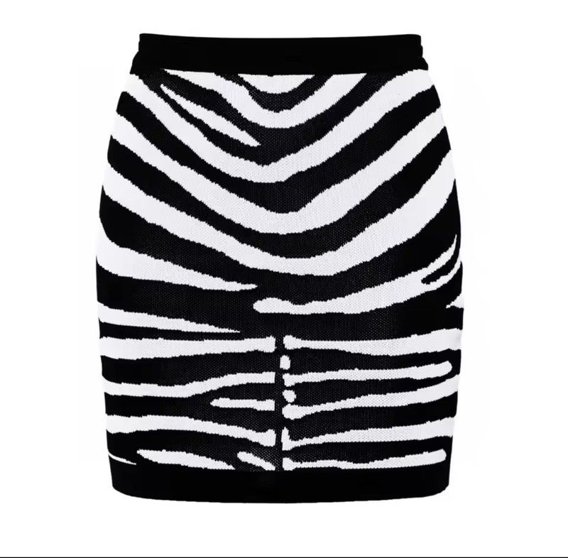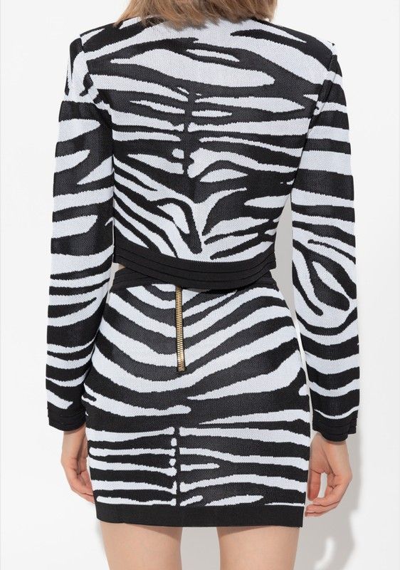 Conjunto de punto de falda y chaqueta de estampado de cebra
