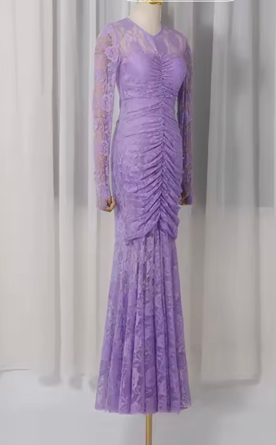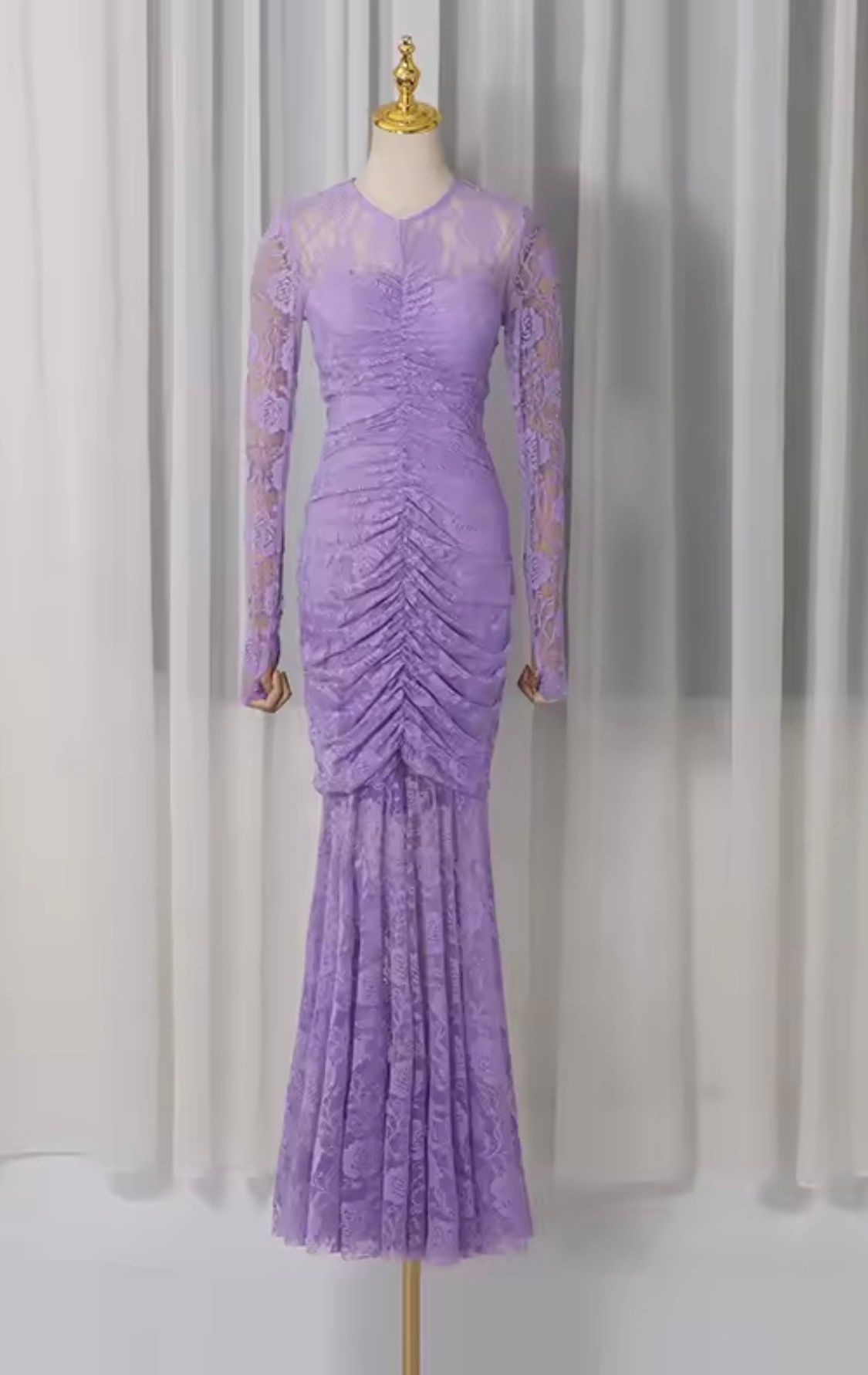 Vestido largo de manga larga y encaje Lavanda