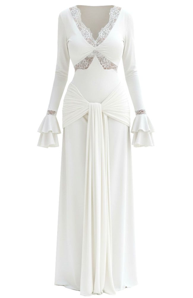 Vestido largo blanco de manga larga, elástico con encaje